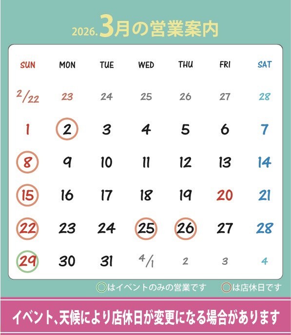 2026年3月の営業について